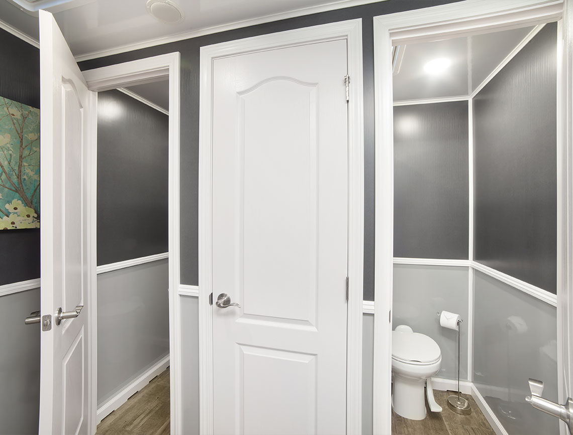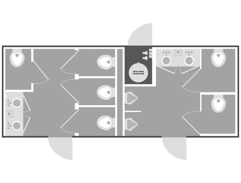 All restroom trailers are standard with bright, white exterior fiberglass finish which give the portable restrooms a clean and crisp look in any location. This dent proof exterior provides for a strong and durable exterior finish that can allow for private company graphics or paint.