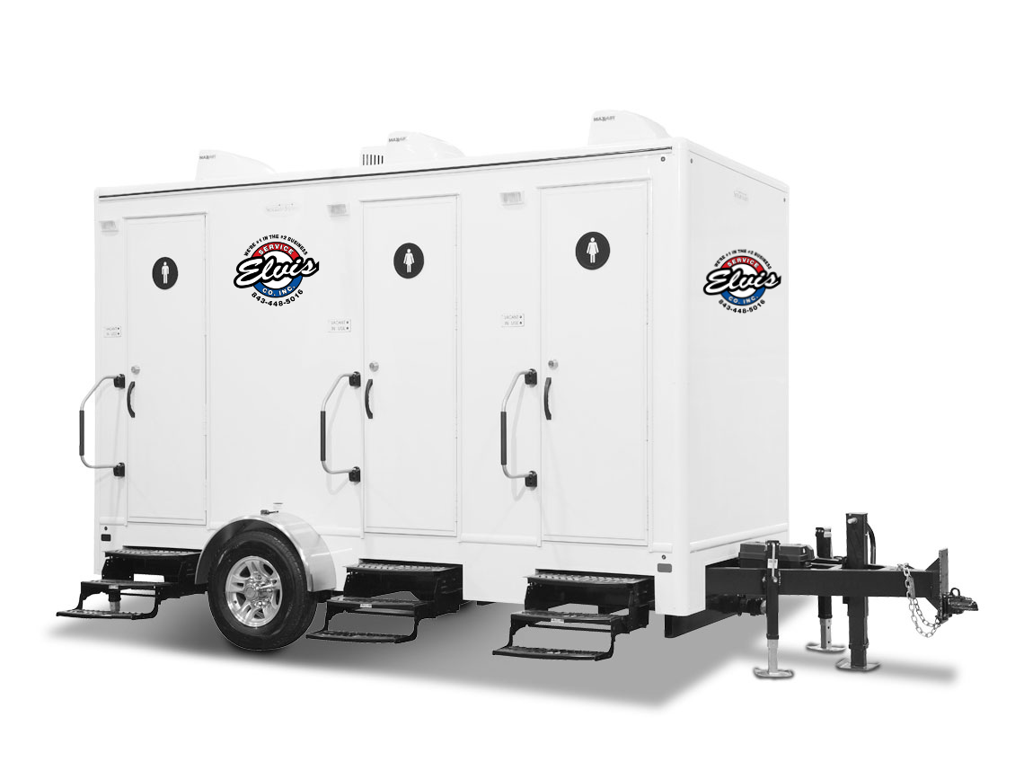 If you have a group of people that need a bathroom trailer with air conditioning, hot water, and three luxurious restroom stalls complete with private sinks and vanities, call Elvis today at 843-448-5016.